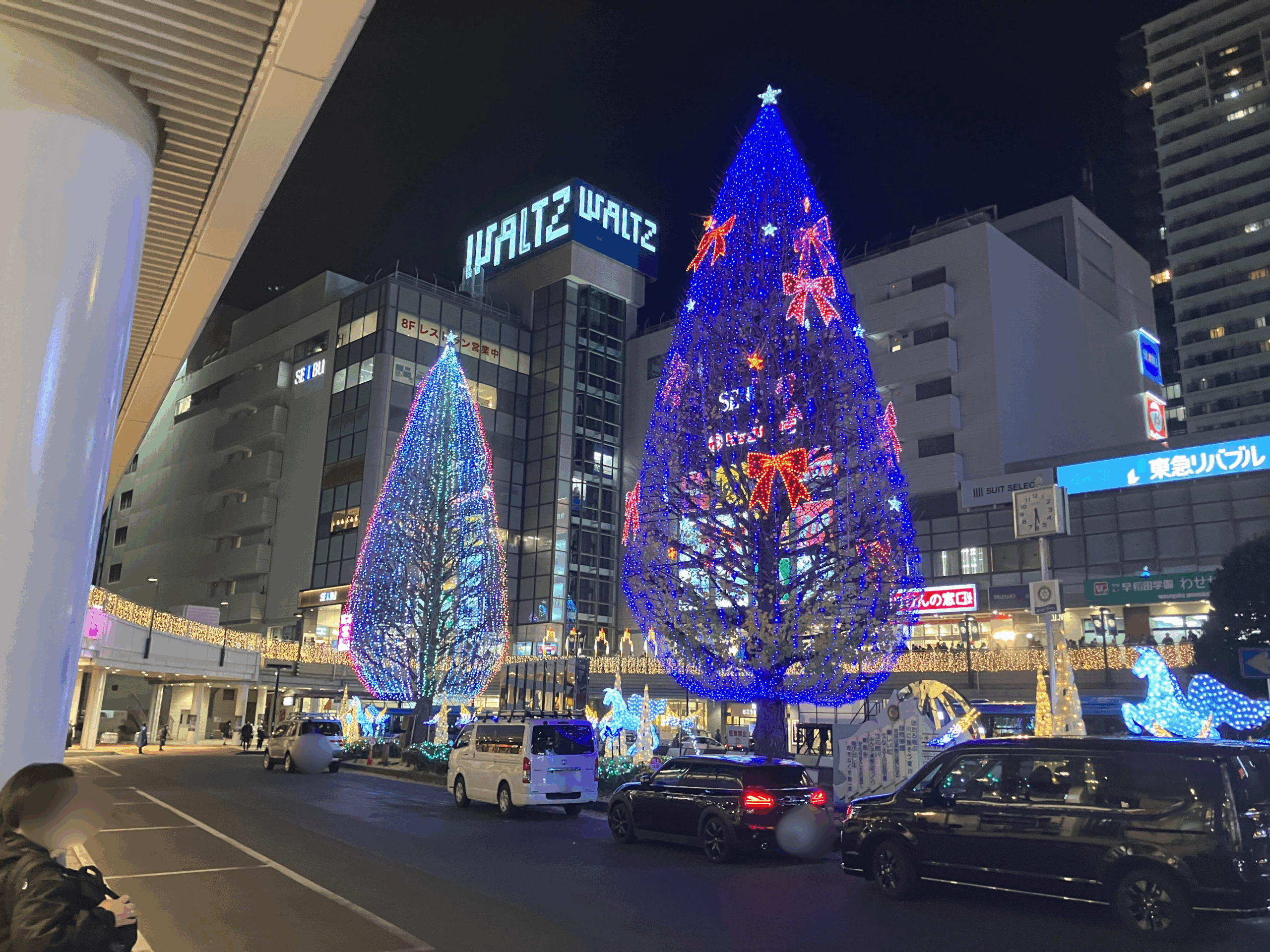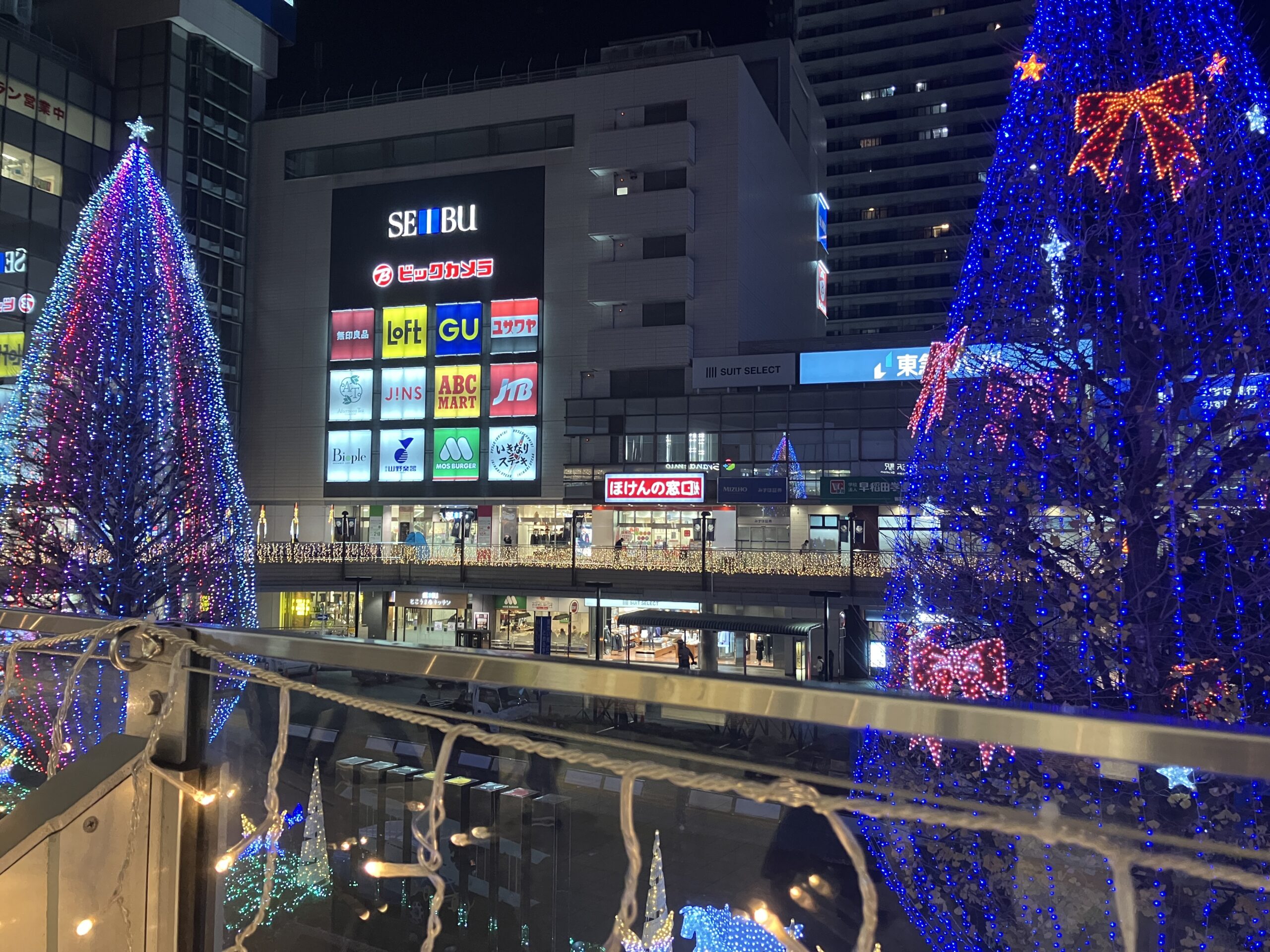 所沢駅西口のイルミネーションは、冬の夜をロマンチックに彩る幻想的な空間を創り出しています。
