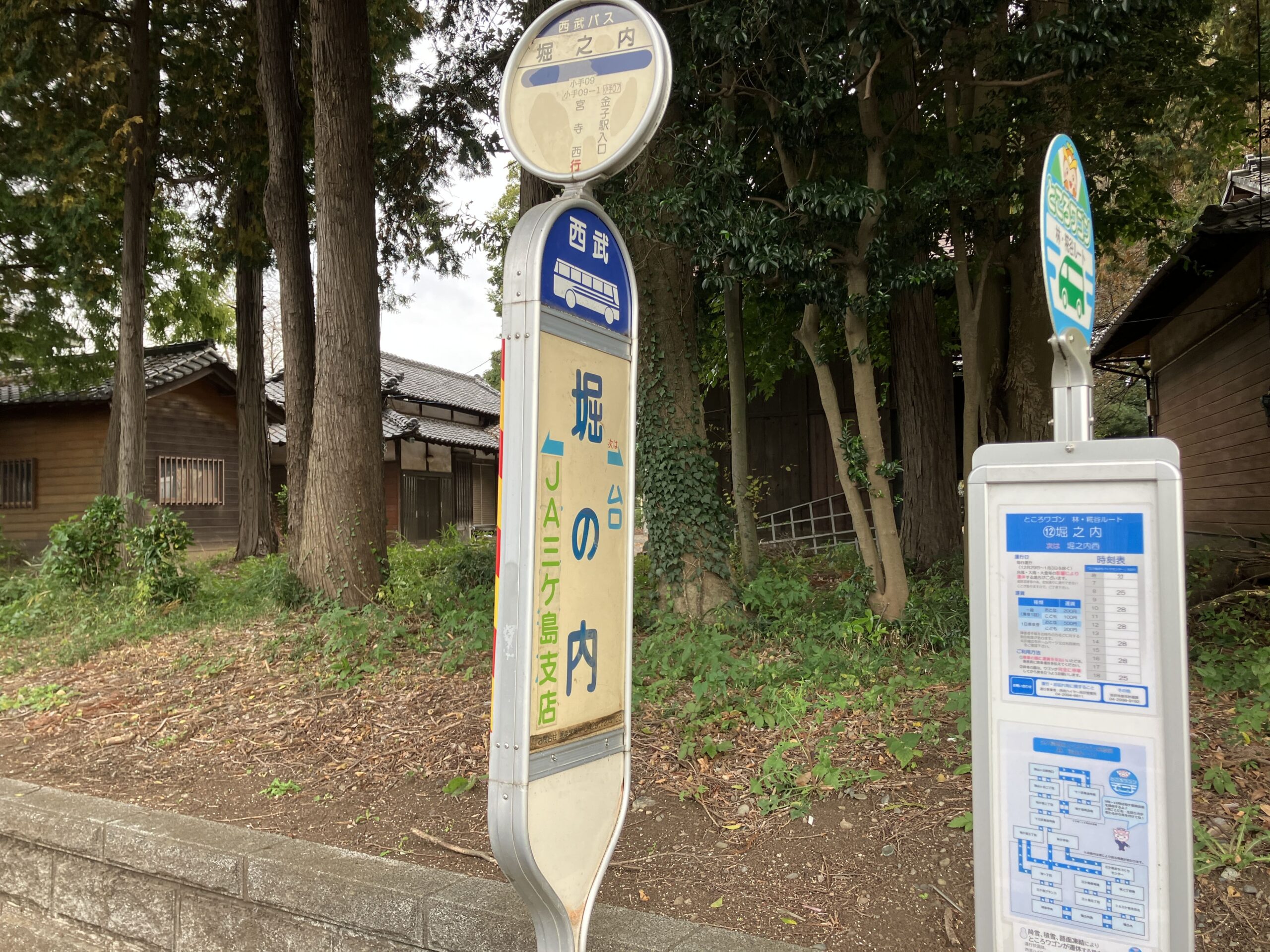 モデルルート1の出発地点である堀之内バス停へは、小手指駅から出ているバスを利用して向かいました。