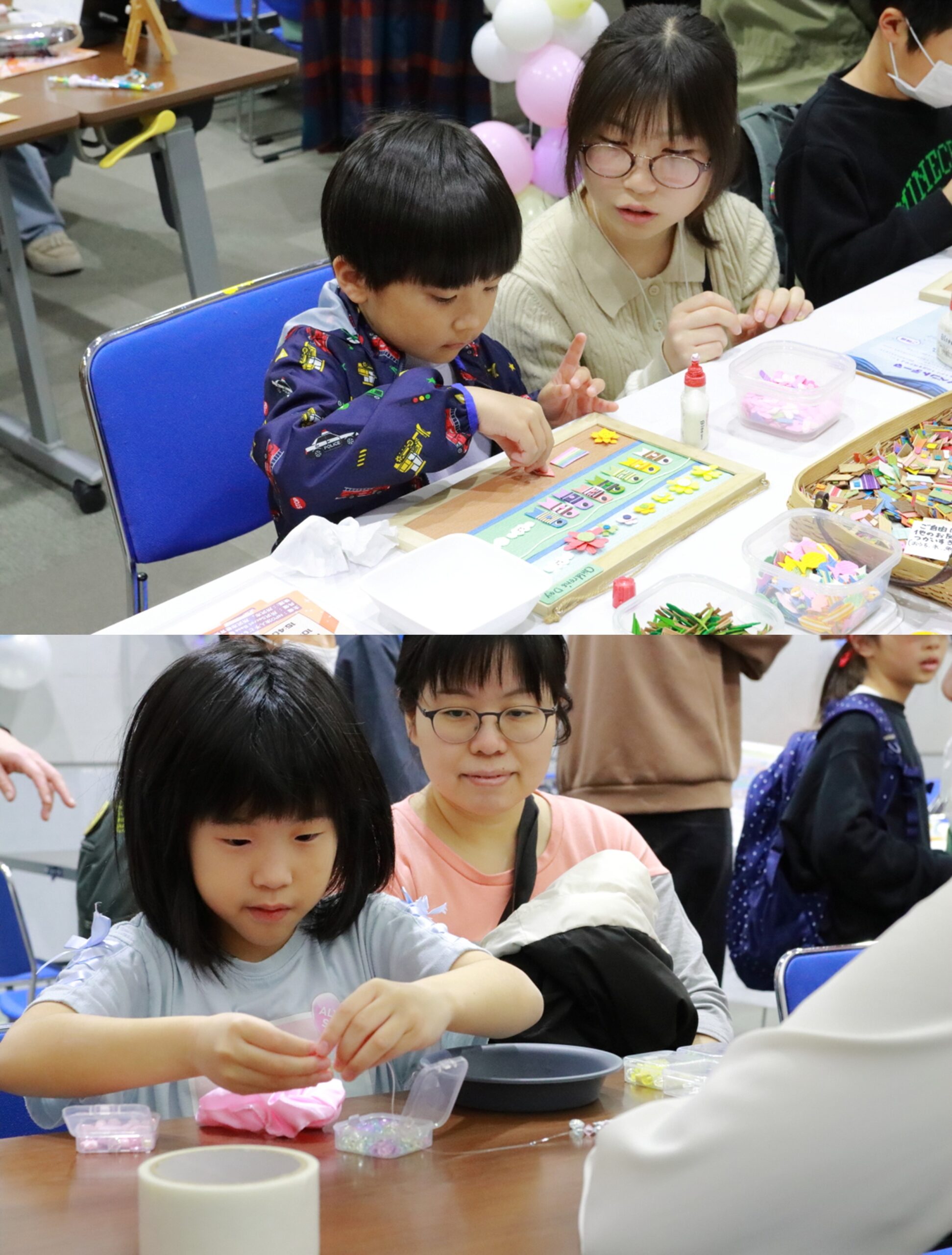 では会場の様子をみていきましょう。会場内はどこも子どもたちの笑顔があふれていました。いろいろな体験ができるブースがたくさん。学生たちが自分たちも楽しみながら、子どもたちと接していました。素敵な笑顔をたくさん『ありがとう』です!