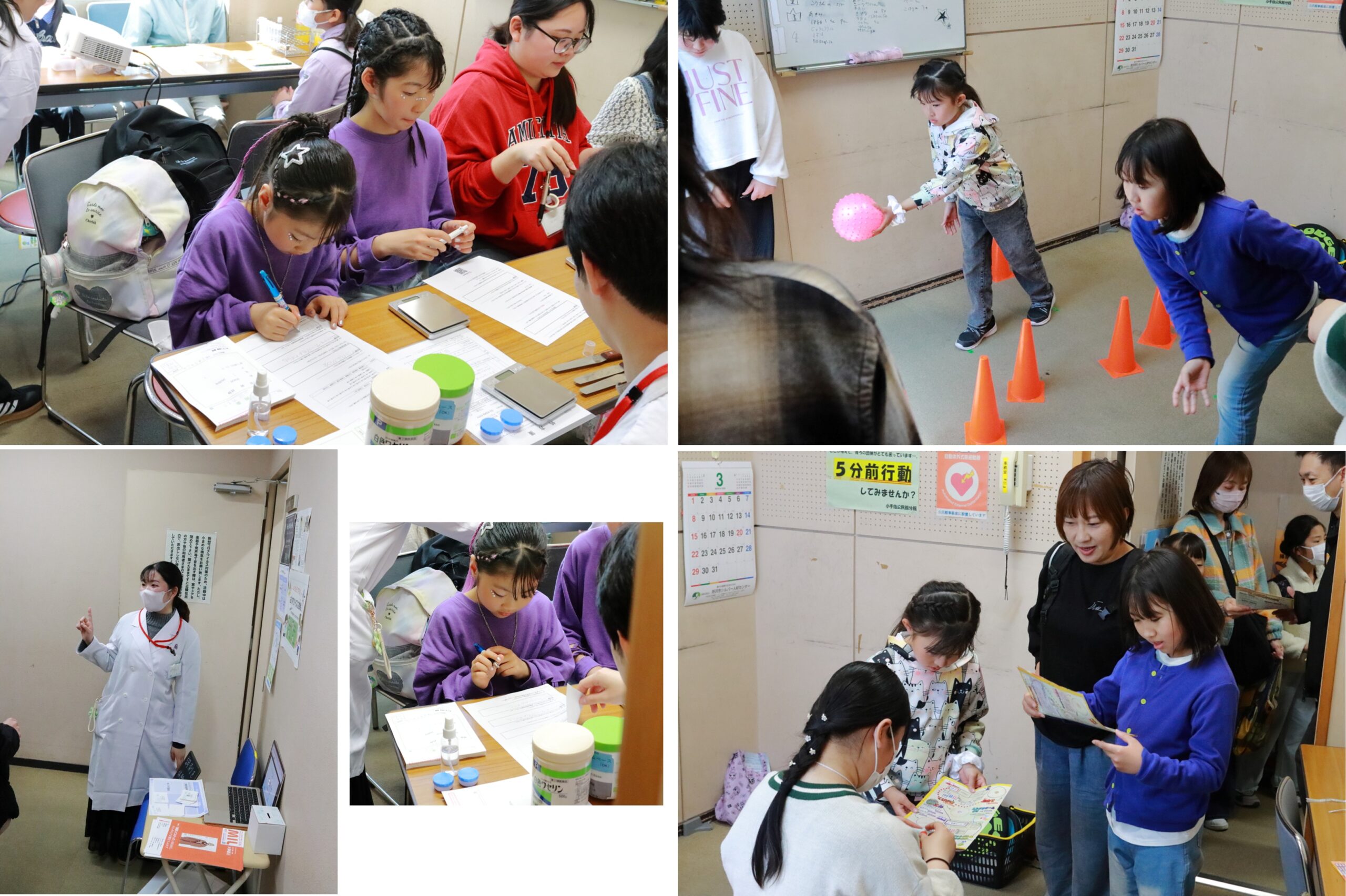 ▲左:おくすり教室さんのブースの様子 右:ペットボトルボウリングの様子