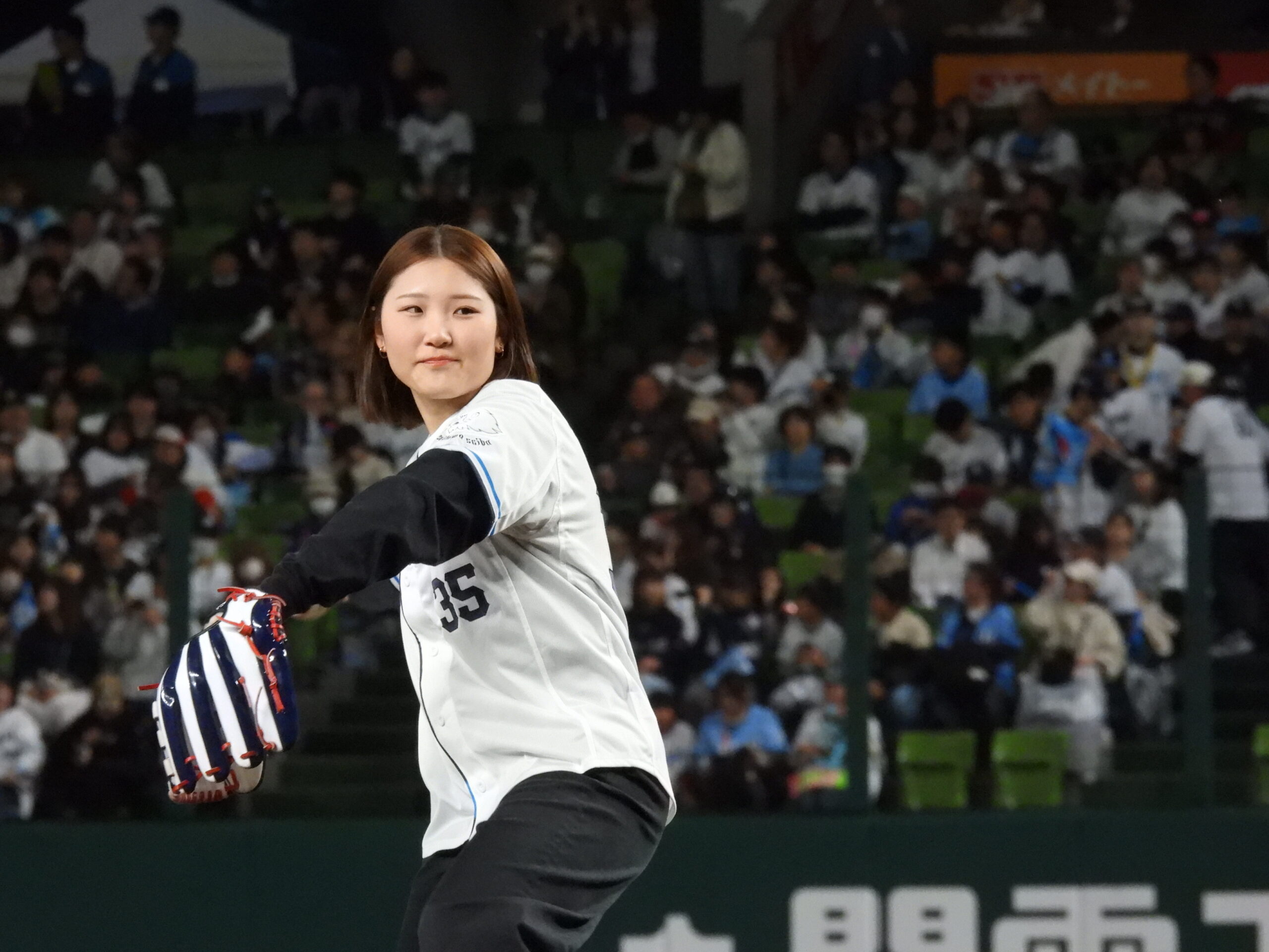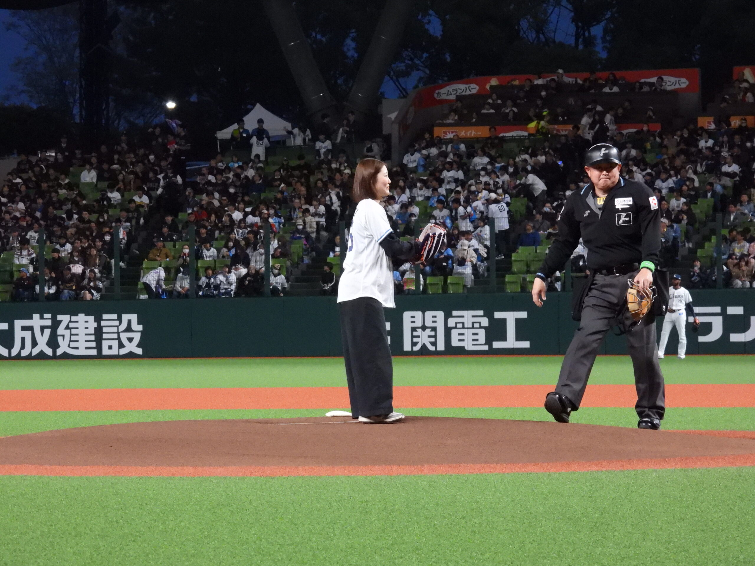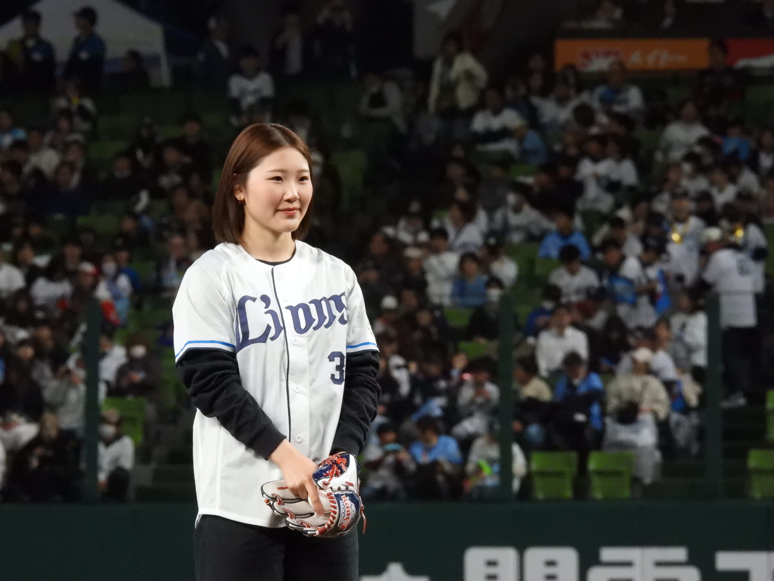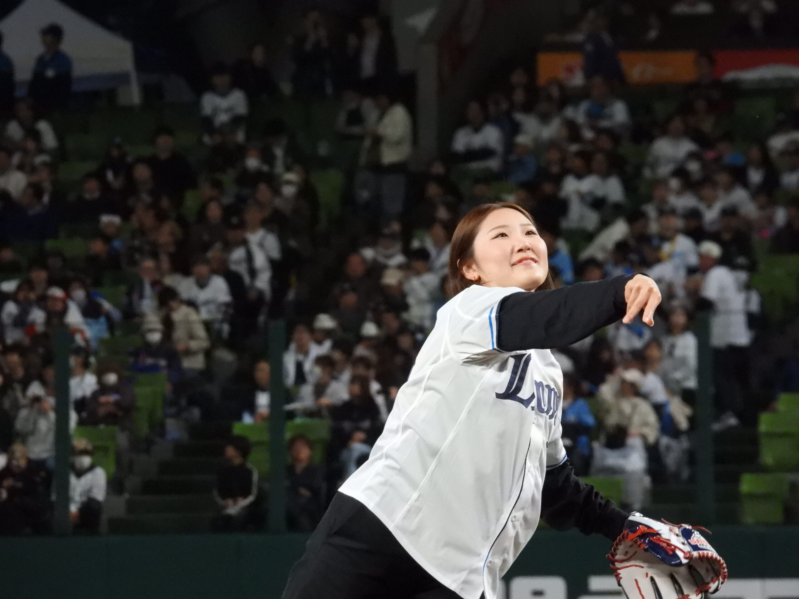 初めての経験で、多くのライオンズファンの皆さんに見られながらの投球はとても緊張しました!もしかしたらオリンピックのときより緊張したかもしれません。