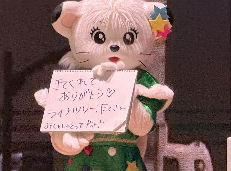 こちらでは今年初めてお披露目のライナツリーと外壁イルミネーションの点灯式が行われました。また、レオとライナと一緒にクリスマスソングを歌ったり、レオとライナとの撮影会が行われたりと盛りだくさんでした。