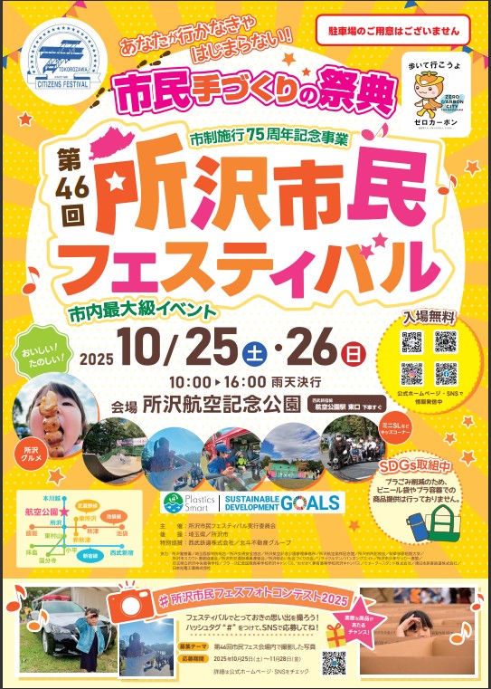 市内最大級イベント所沢市民フェスティバルが今年も開催!【2025年10月25日(土)、26日(日)】