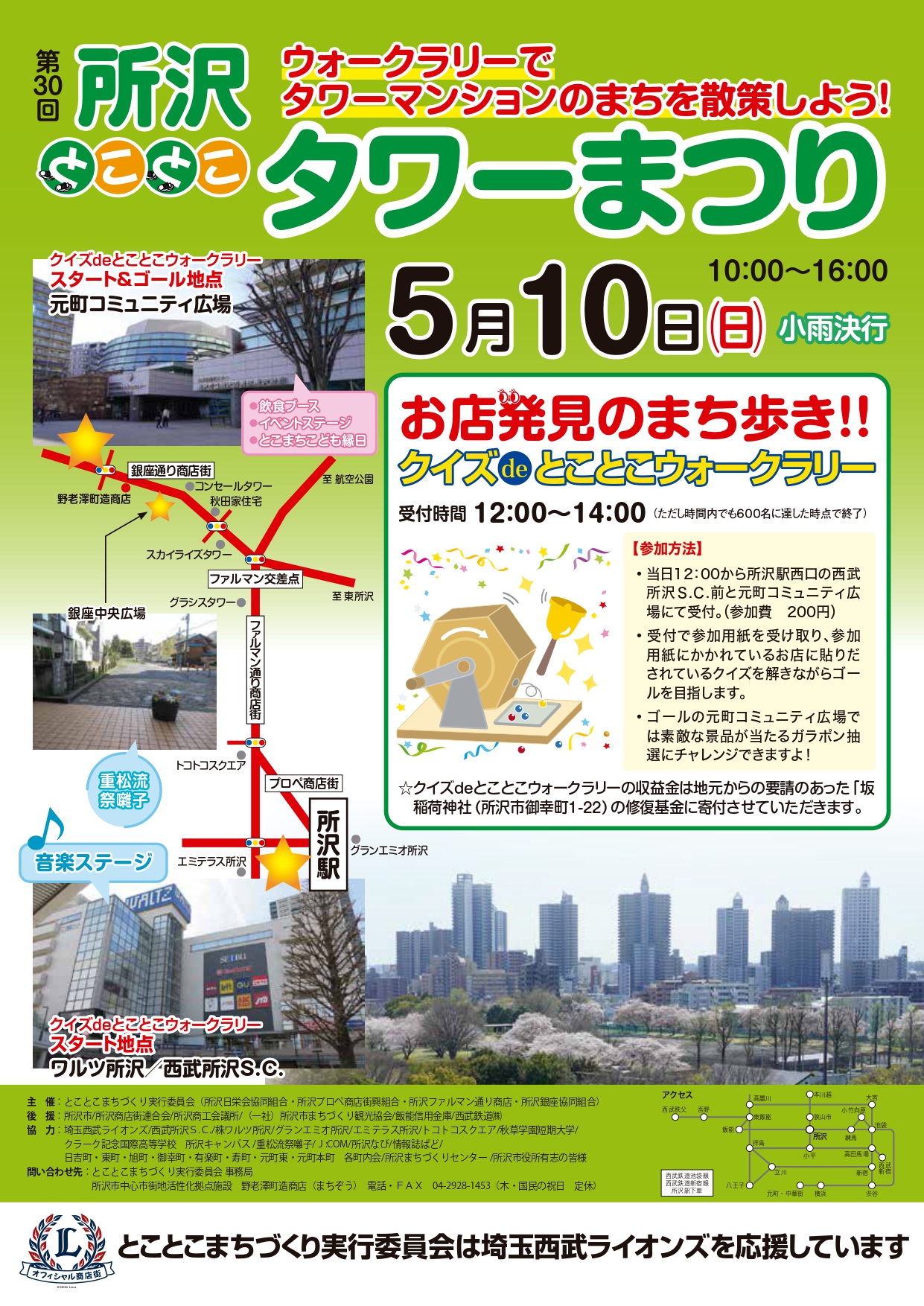 2026年5月10日(日)第30回とことこタワーまつり!所沢の街を歩いて楽しむ1日