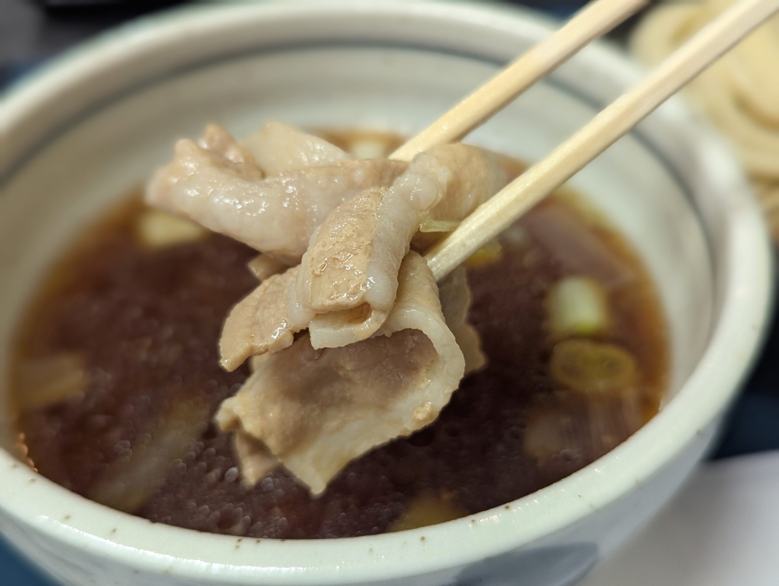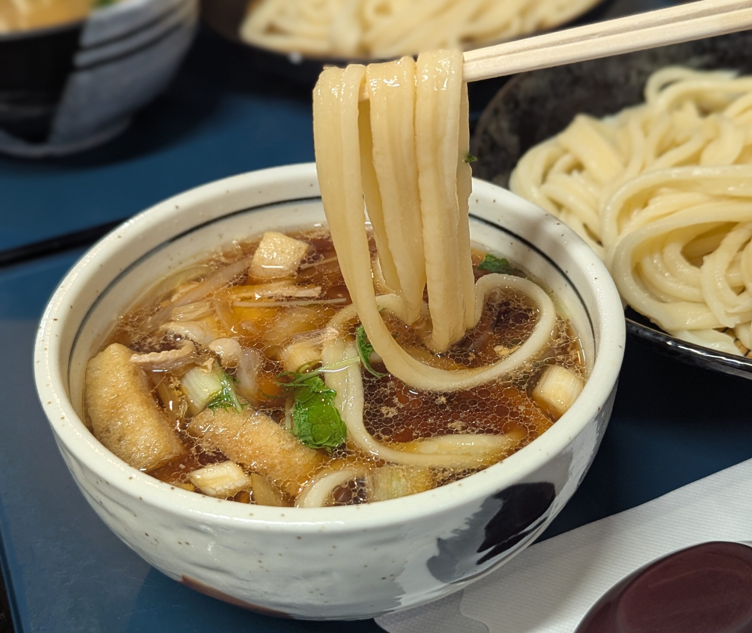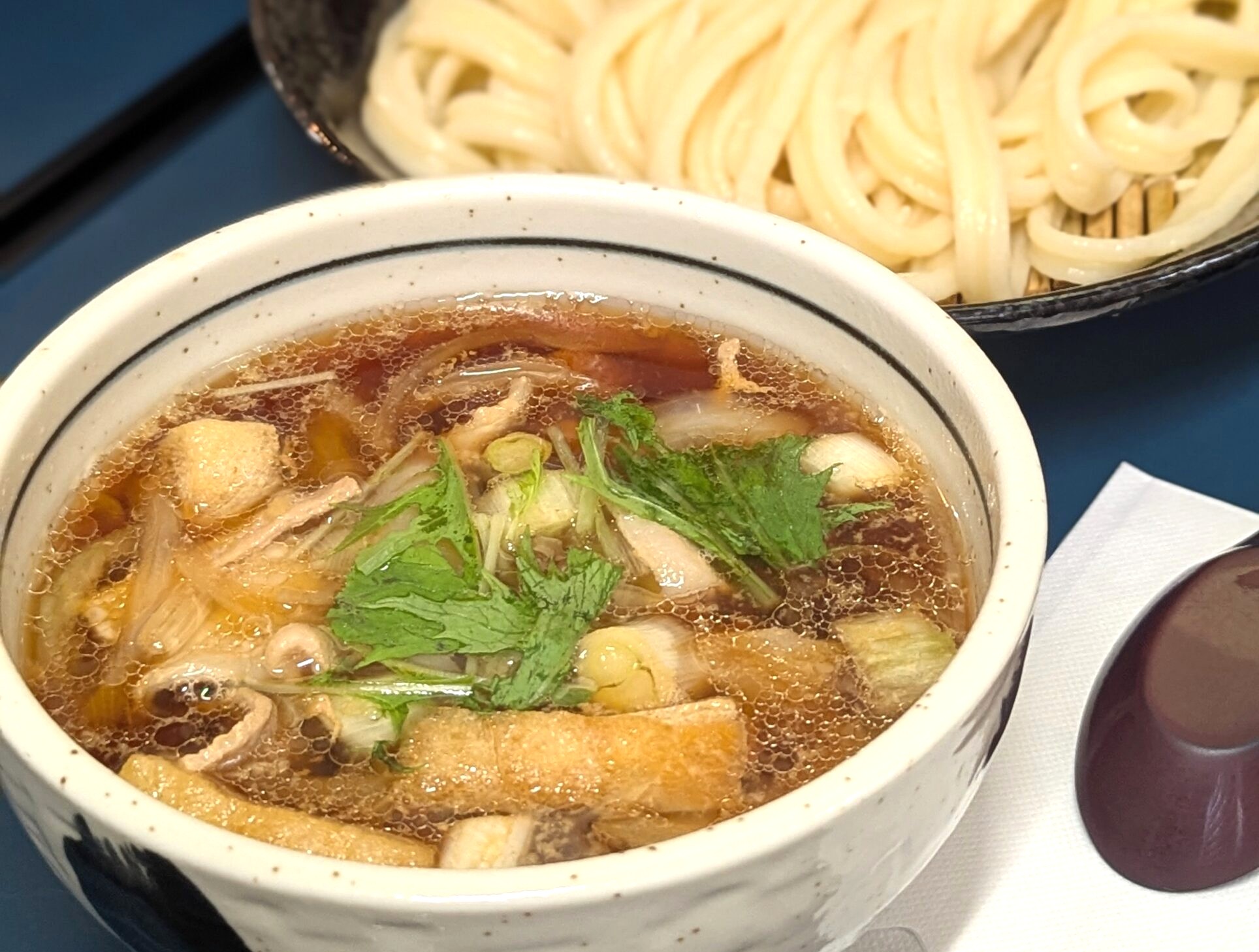 どちらのメニューも甘みとコク深い濃厚なつけ汁で、最後の一滴まで飲み干したくなる味わいです。