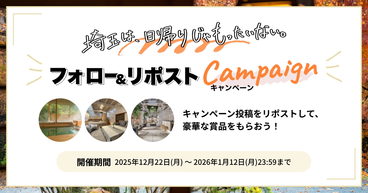 【埼玉は、日帰りじゃもったいない。 Xフォロー&リポストキャンペーン】