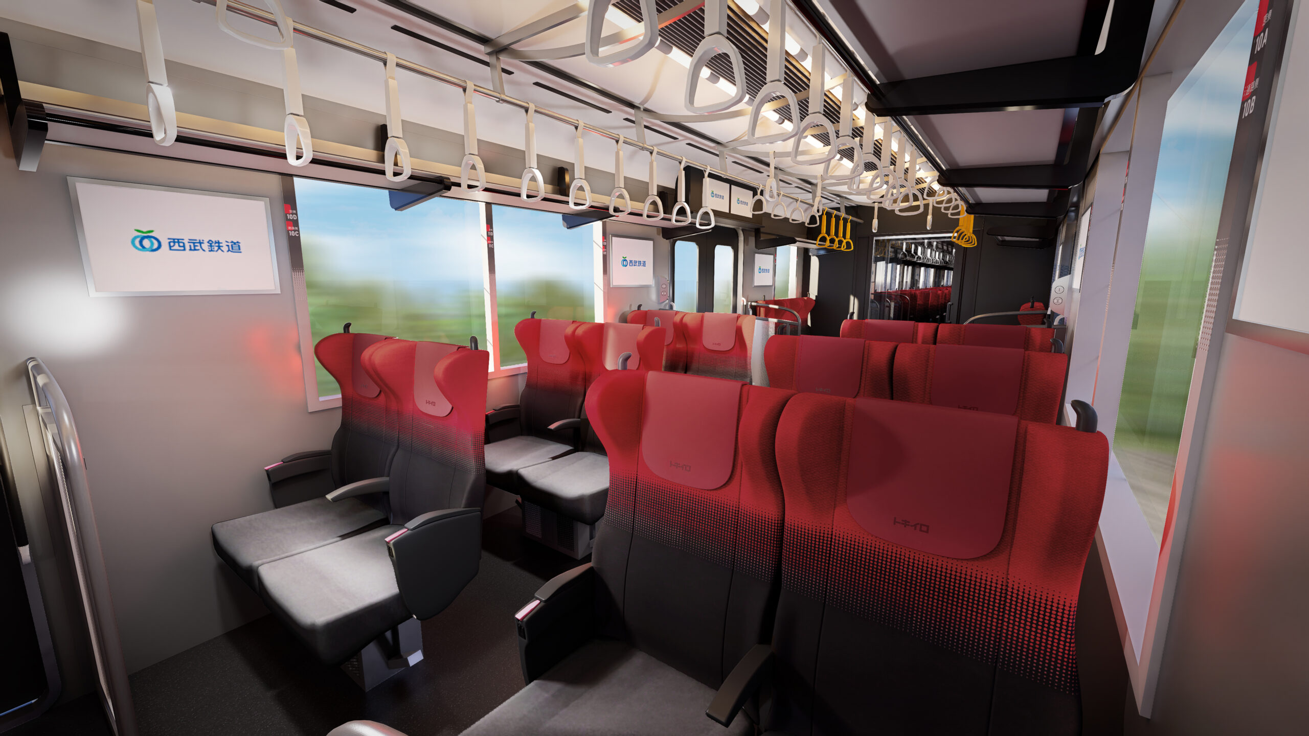 座席色は車体デザインに合わせたレッドとオレンジを採用し、統一感のある車内空間を演出しています。