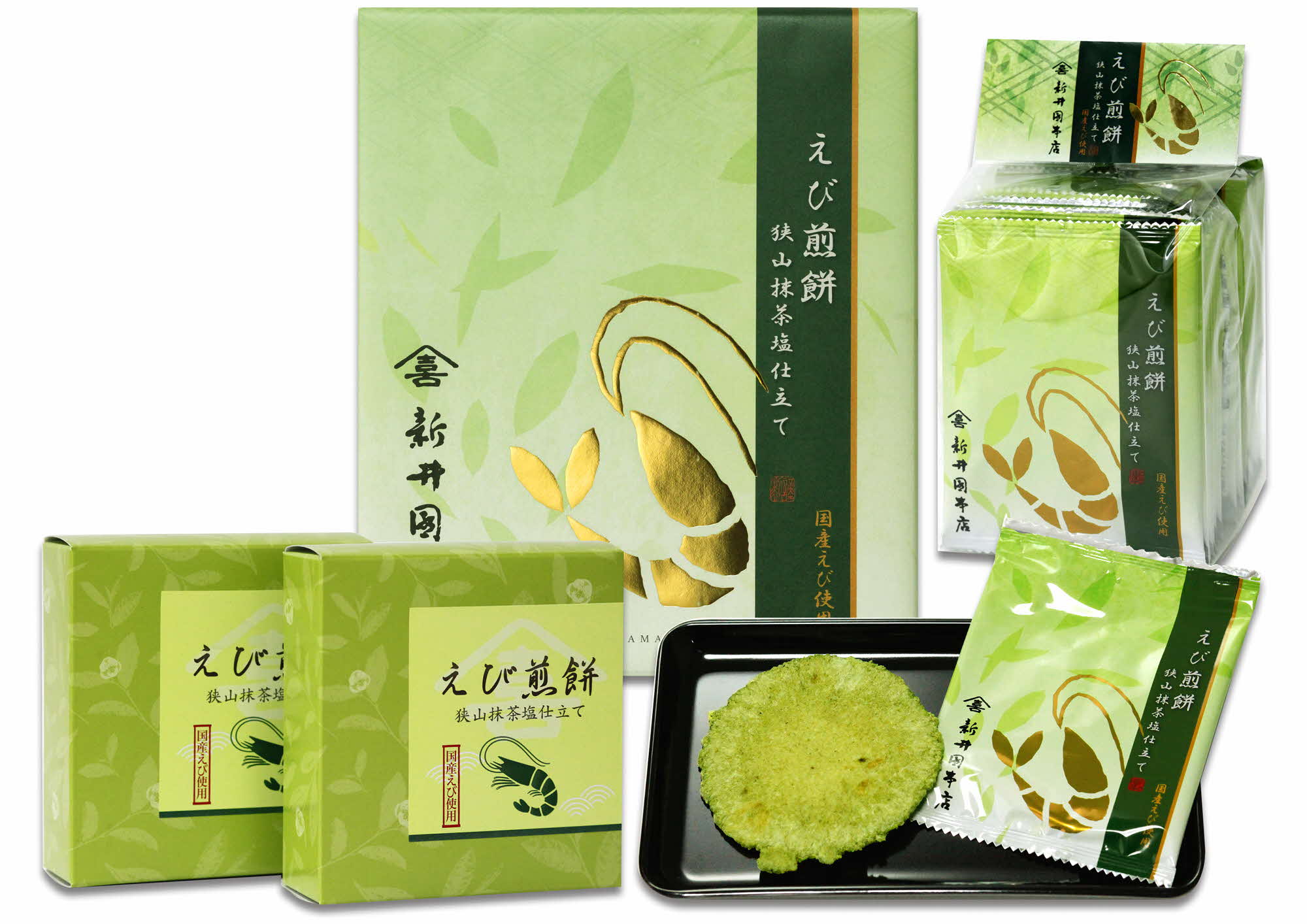 インバウンドでも注目される狭山抹茶と、香ばしい国産えびの風味を組み合わせ、軽やかでありながら深い味わいに仕上げられています。