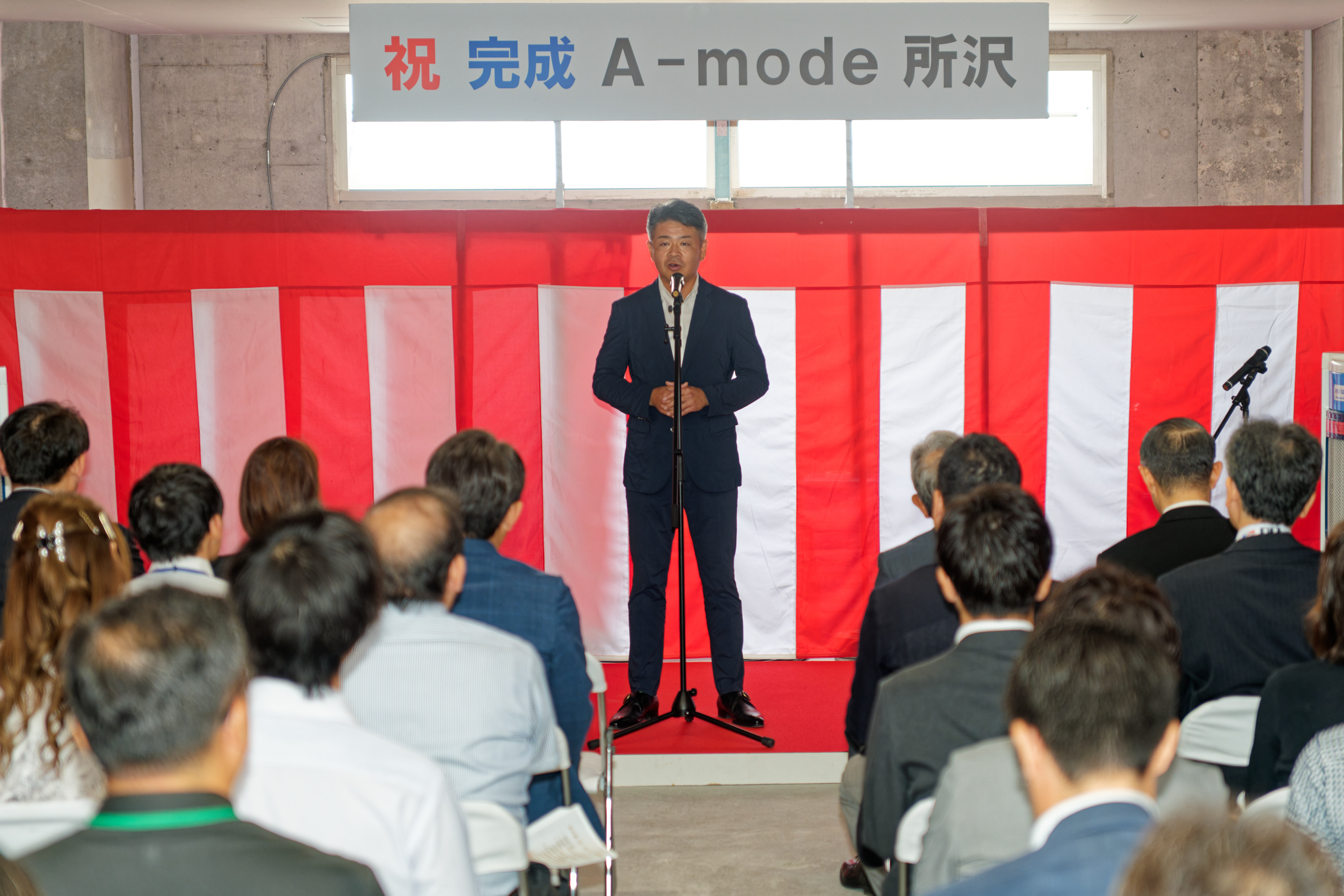 内覧会当日は、有限会社新栄 代表取締役 新井和弥氏による施主挨拶をはじめ、所沢商工会議所会頭 荻野敏行氏、衆議院議員 柴山昌彦氏による祝辞が行われました。