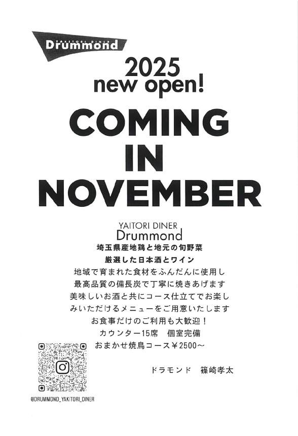- 「YAKITORI DINER Drummond(ドラモンド)」【地産地消の焼鳥専門店】
