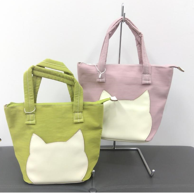 大きな猫の形のポケットがついたランチボックスサイズのトートバッグ。春らしいカラーもポイントです。