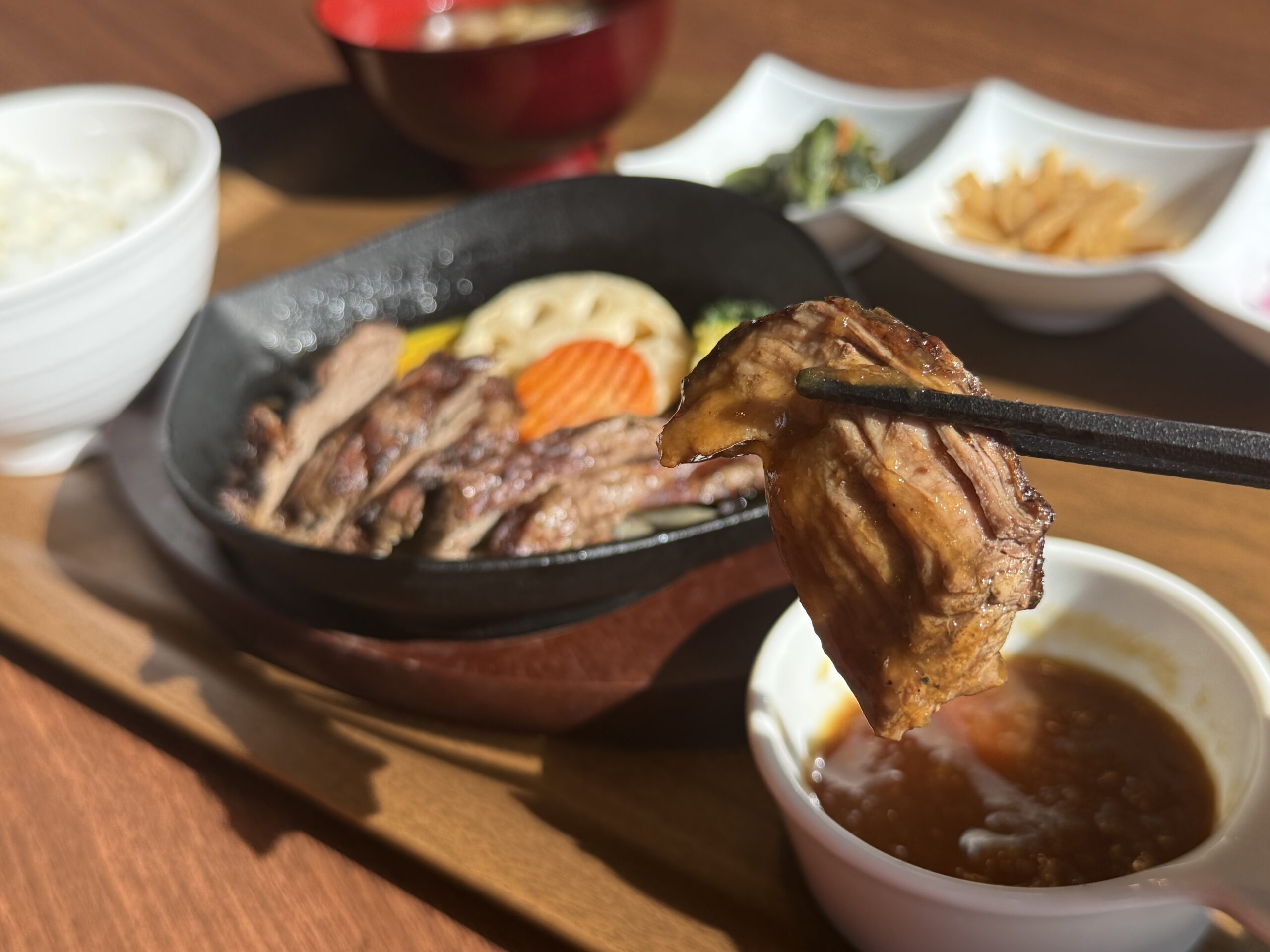 ビフテキは店内で手切りをしてから調理をするという、手間ひまを惜しみなくかける理由は、手切りをすることで、肉の旨味を最大限に引き出すことができるからなのだそう。ビフテキは鉄板のほか、御膳などの和食メニューでも楽しむことができますよ。編集部スタッフは、和膳でいただいてみることに。