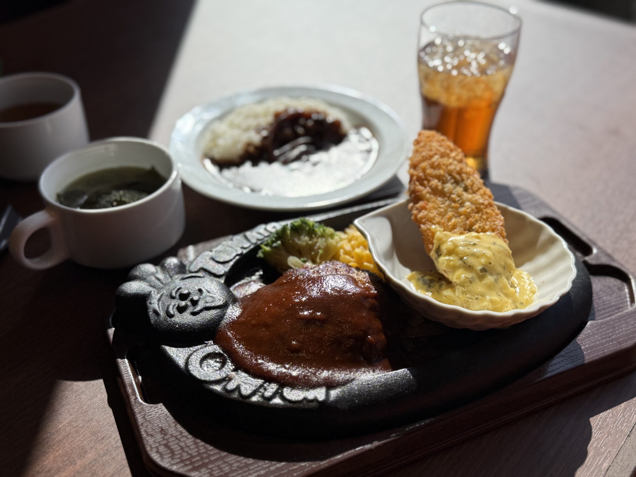 プレオープン日の月曜日、日替わりハンバーグランチは「デミハンバーグ&白身フライ」でした。弾丸ハンバーグとはまた違った美味しさで、とてもまろやか。「ハンバーグ×デミグラスソース」最強ですね。白身フライもサックサクで、しっかりした味付けのタルタルソースが白ごはんによく合います。