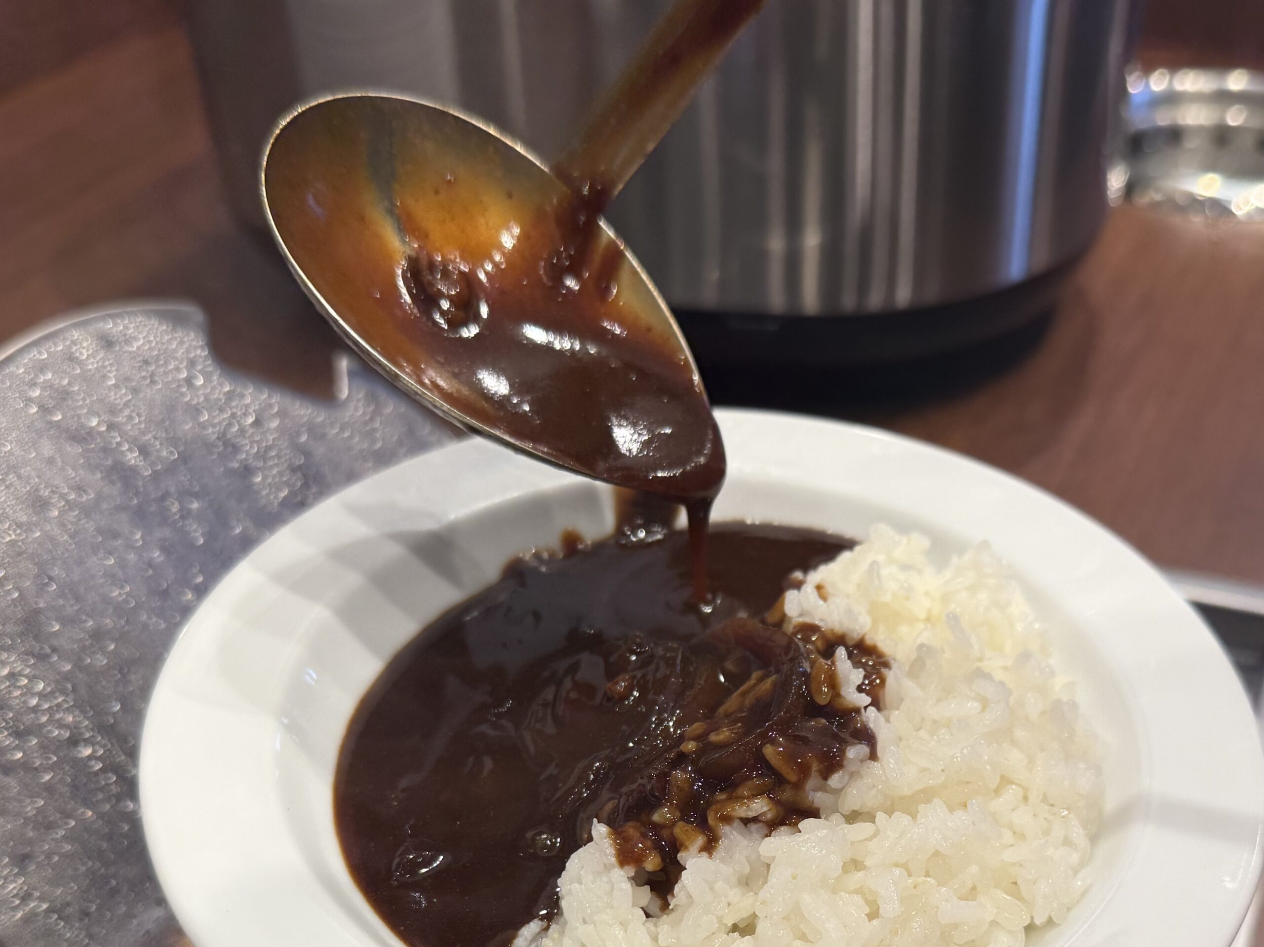 バーコーナーから、お好きな量を心ゆくまでお召し上がりいただけますよ♪編集部スタッフもこの黒カレーの美味しさに心捕まれました・・!ぜひ、お試しあれ♪