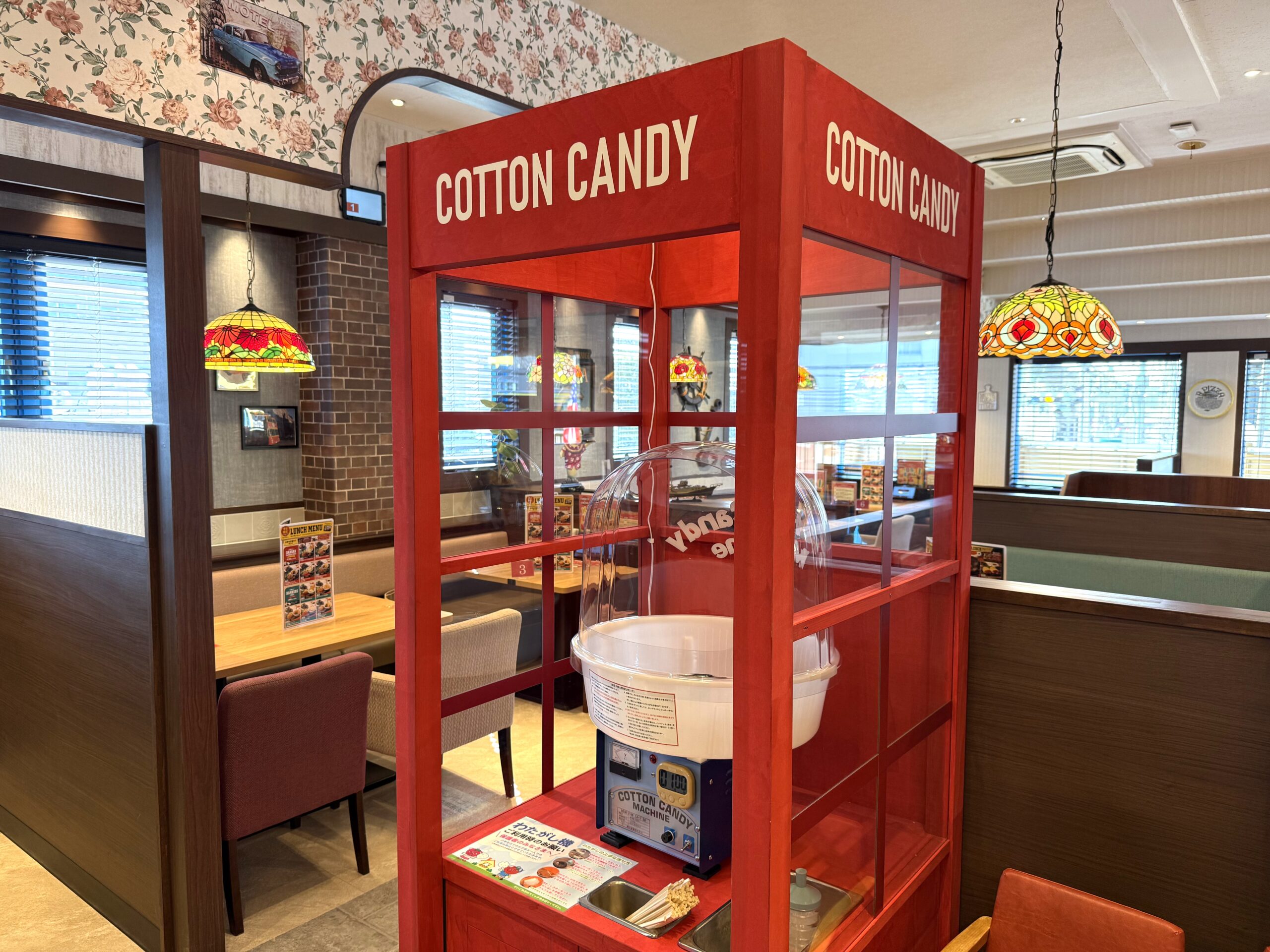 大人から子どもまで大人気!無料で楽しめる「わたがし機」も用意されています。どのメニューでも注文されたお客さま、どなた様でもご利用OK!遊び心のある、嬉しいサービスですね♪