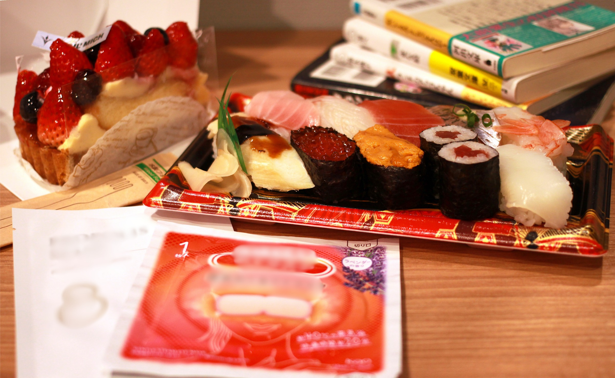 しばし家事育児から解放され、第2テーマである、束の間の現実逃避、ご褒美時間を新築の東横INNで過ごしました。ひとり時間を存分に楽しむべく、お部屋での夕飯に選んだのは、お寿司&ケーキ✨の最強コンビ!あと、リフレッシュするための癒しグッズ👍