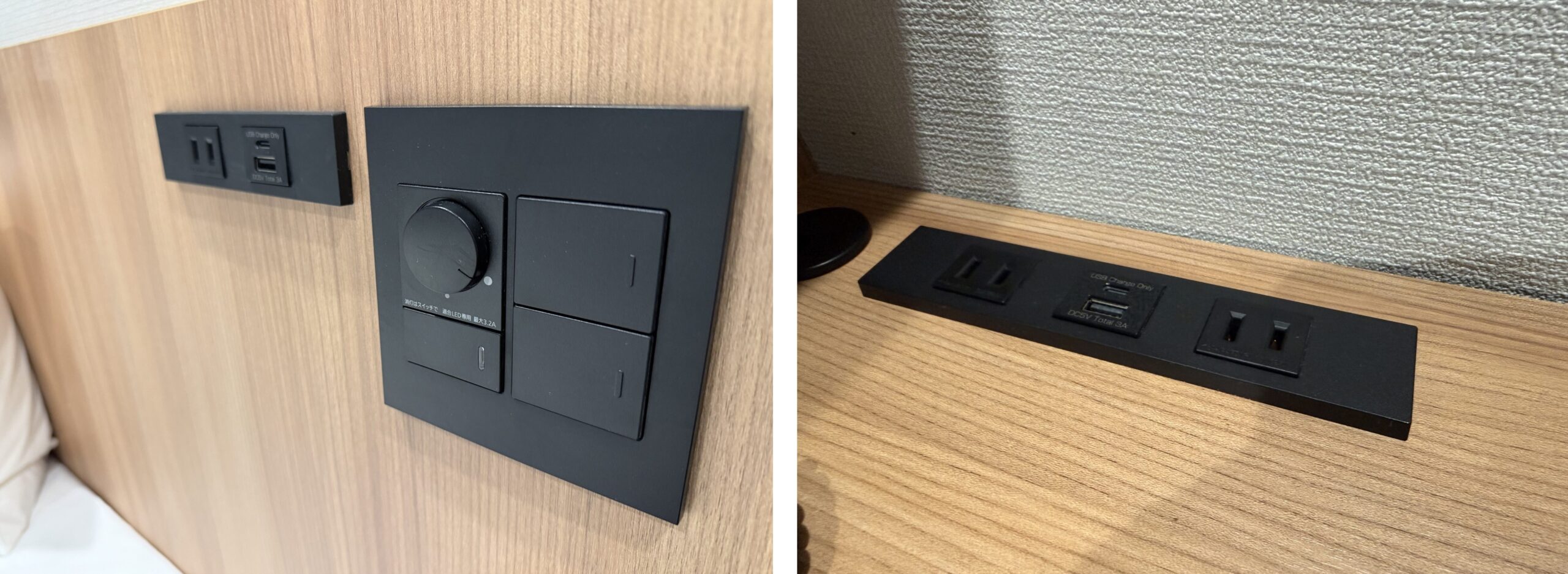 ベッド周り、デスク周りの電源はこのような感じです。