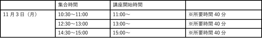 <募集人数> 各回30名(先着順) ※定員に達しない場合は当日受付あり